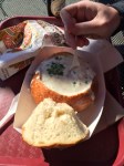 a famous dish in san fran is called Boudin its clam chowder in a sour dough bowl! so good!