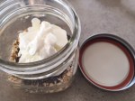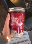 - In yet another jar, begin the layering starting with the overnight oat base, next the jam, next the oat base … you get it.
