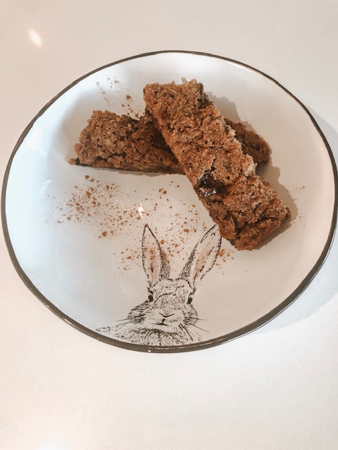 - Pour into lined pan and bake for 40 minutes or until a toothpick comes out clean in the centre.